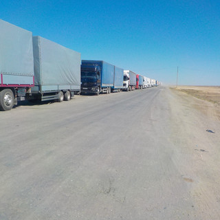 Am nächsten Tag geht es gut ausgeruht die 80 km zur Grenze nach Usbekistan. Die Strecke ist der reinste Horror: Wüste, Schlaglöcher, Staub und viel Verkehr machen für uns das Fahren zur Tortur. Der Grenzübertritt gelingt dafür aber erneut problemlos in nur zwei Stunden. Andere Reisende haben uns vorher von sieben bis acht Stunden Wartezeit an der Grenze berichtet. Auch hier sind alle getroffenen Menschen wieder sehr nett, hilfsbereit und freundlich, aber vieles von dem, was wir vorher für gegeben erachtet haben, scheint hier nicht mehr zu gelten. Einen festen Wechselkurs z.B. gibt es offenbar nicht und der Umtausch findet aus Mangel an Wechselstuben auf dem Schwarzmarkt statt. Dies führt schnell zu ganzen Plastiktüten an Bargeld, denn die 1000 So'm-Scheine sind kaum etwas wert. Gut gewechselt sind 7000 So'm etwa 1 €. Außerdem ist Benzin an Tankstellen kaum zu erhalten, sondern wird von uns ebenfalls auf dem Schwarzmarkt gekauft. Wir haben zum Glück noch vor der Grenze getankt und alle Kanister aufgefüllt, so dass wir problemlos durch die anschließende Wüste kommen. In dieser übernachten wir dann auch. Es ist sehr ruhig, nur der Wind ist zu hören. Unter dem offenen Himmel sind wir ganz allein und es herrscht eine unglaubliche Atmosphäre.