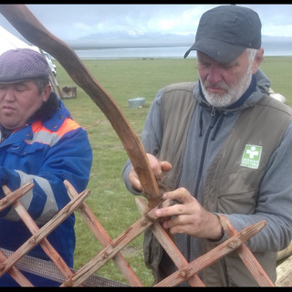 Den Zeitpunkt unseres Besuches hätten wir uns gar nicht besser aussuchen können. Die alljährlich hierher ziehenden Hirten mit ihren Schafherden, waren gerade erst eingetroffen und hatten mit dem Aufbau ihrer traditionellen Jurten begonnen. Wir wurden freundlich aufgenommen und direkt als Hilfskräfte beim zunächst kompliziert wirkenden Bau eingespannt.